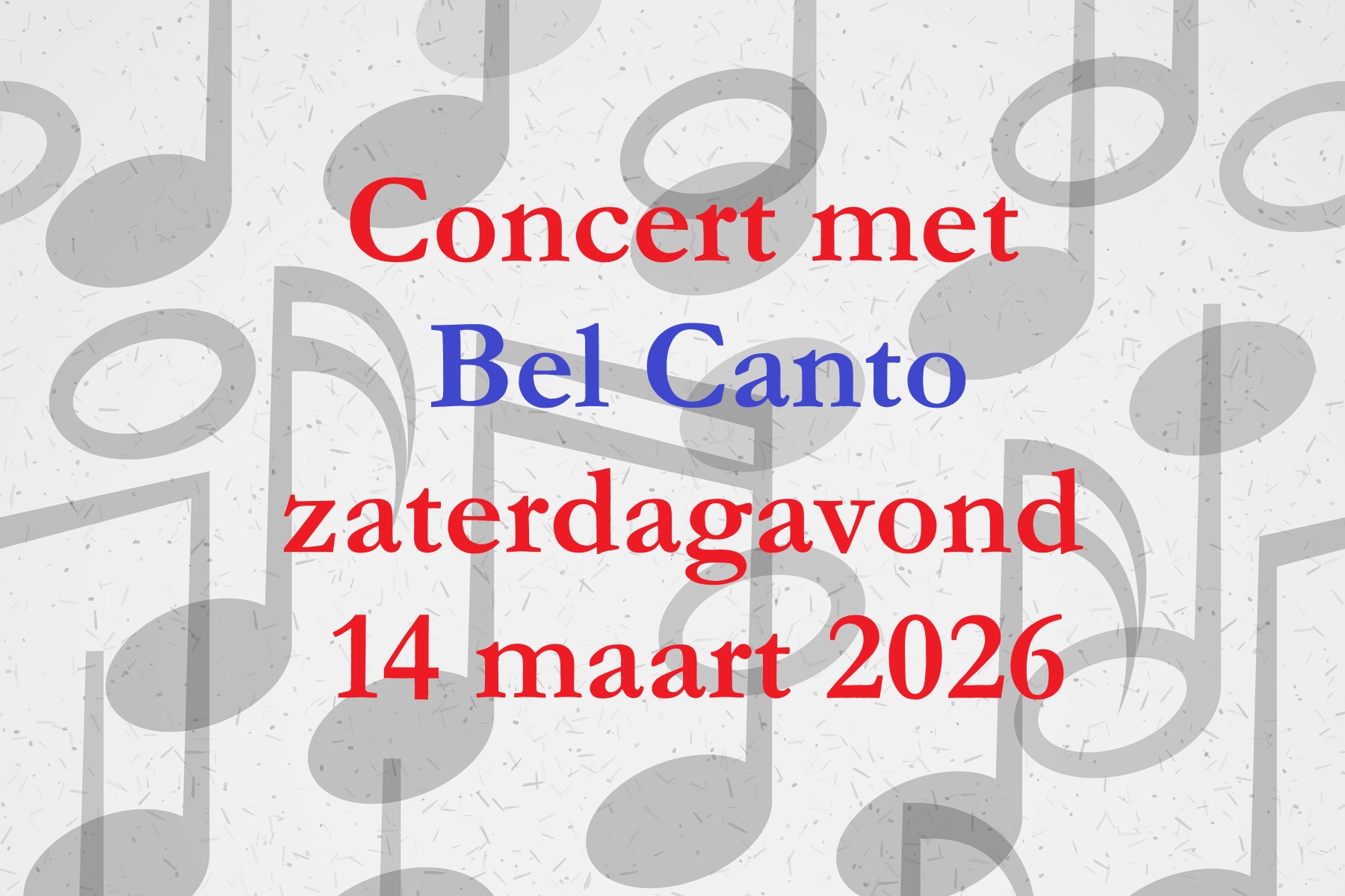 We gaan met het mannenkoor Bel Canto uit Apeldoorn een concert geven op zaterdagavond 14 maart 2026. Nadere bijzonderheden volgen binnenkort.